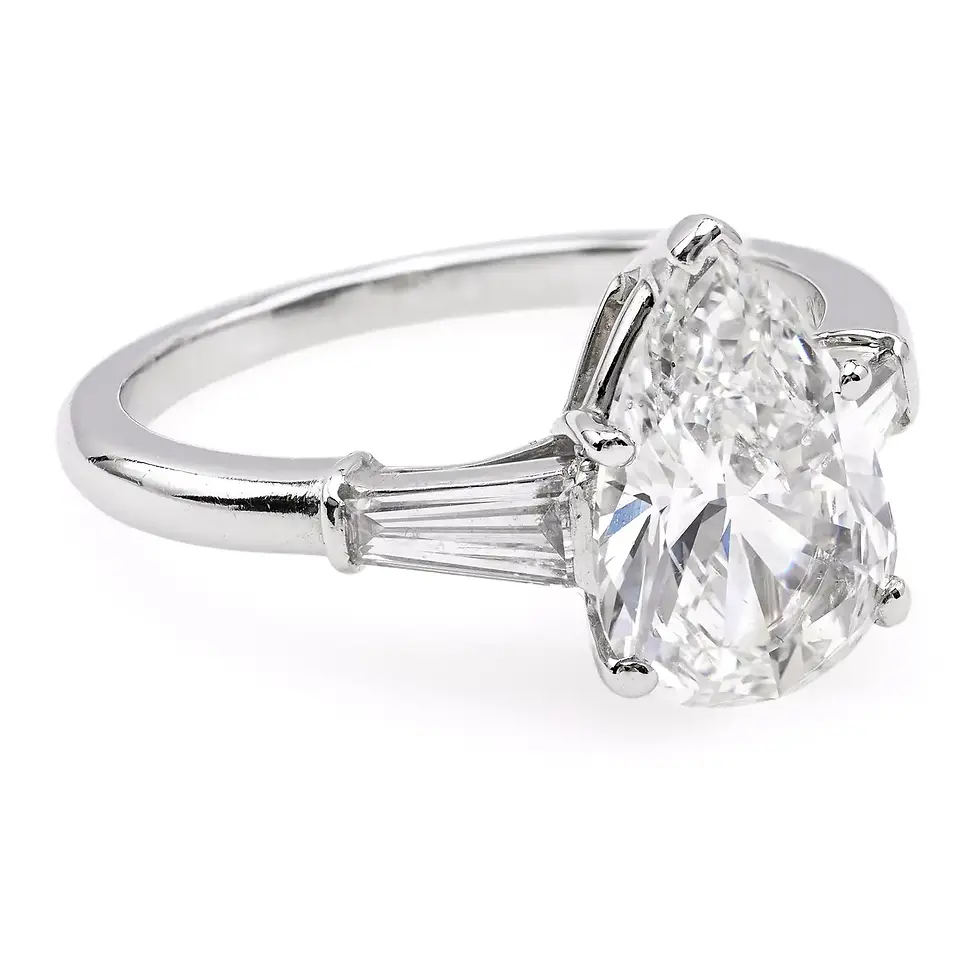 Mid Century Cartier GIA 1.77 Carat Pear Cut Diamond Platinum Ring