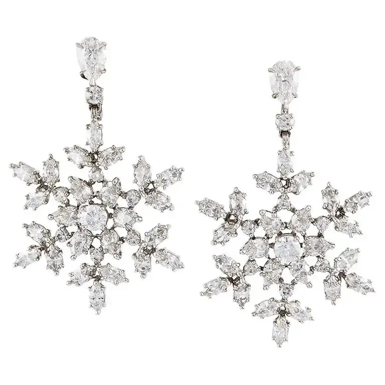 Harry Winston Vintage Collection Diamond Snowflake Drop Earrings