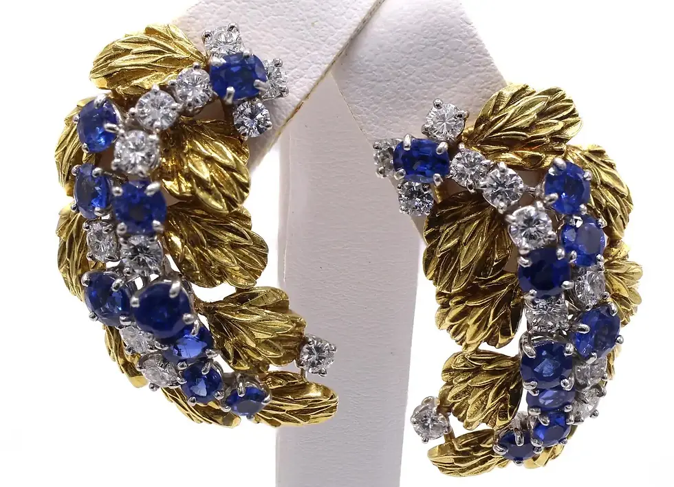 Harry Winston 1980s Sapphire Diamond 18 Karat Yellow Gold Ear Clips