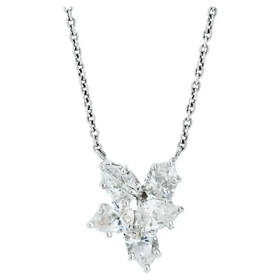 Harry Winston 1.00 Carat Pear Shape Diamond Cluster Pendant Necklace in Platinum
